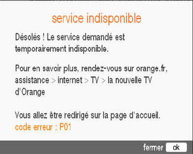 Si le problème persiste, consultez le site Infos Incidents d’Orange pour vérifier si un problème global affecte le réseau ou les services. Parfois, le code P01 peut être causé par une panne temporaire.