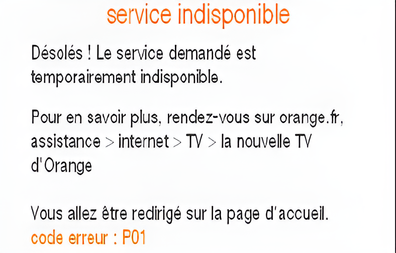 Le code erreur P01 s’affiche sur votre écran lorsque vous essayez d’accéder à un service sur la TV d’Orange ? Pas de panique, cette erreur signifie généralement que le service demandé est temporairement indisponible. Voici un guide détaillé pour identifier et résoudre ce problème.